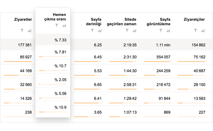 Hedef kitlenizin tercih ve ihtiyaçlarını daha iyi anlayarak kârınızı artırmak için ziyaretçi trafiğinizdeki eğilimleri ve kullanıcı davranışlarını inceleyin.