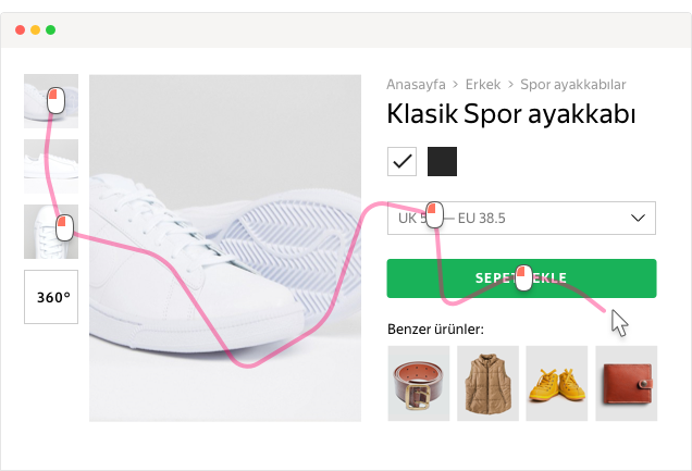 Ziyaretçilerin sitenizdeyken hangi buton ve bağlantılara tıkladıklarını, sayfaları nereye kadar kaydırdıklarını, yaptıkları fare hareketlerini, hangi tuşlara bastıklarını ziyaret kayıtlarından video gibi izleyin. Sitenizde dönüşümü engelleyen öğeleri tespit edin, ziyaretçilerinizin ihtiyaçlarını öğrenin ve sitenizi daha kullanışlı hale getirin.